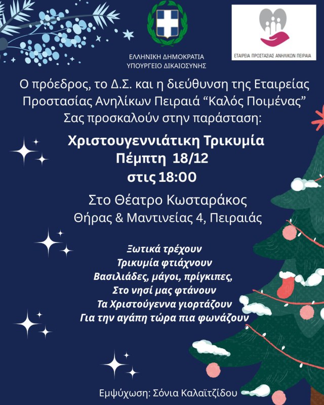 ΠΡΟΣΚΛΗΣΗ ΣΕ ΘΕΑΤΡΙΚΗ ΠΑΡΑΣΤΑΣΗ ΑΠΟ ΤΗΝ ΕΤΑΙΡΕΙΑ ΠΡΟΣΤΑΣΙΑΣ ΑΝΗΛΙΚΩΝ ΠΕΙΡΑΙΑ