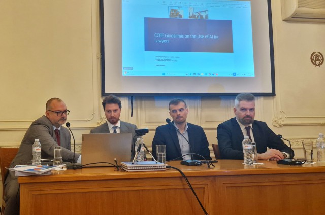 Στο επίκεντρο της εκδήλωσης βρέθηκε ο Ευρωπαϊκός Κανονισμός για την Τεχνητή Νοημοσύνη EU AI ACT και οι Οδηγίες του Συμβουλίου των Ευρωπαϊκών Δικηγορικών Συλλόγων (CCBE) για τη χρήση της Τεχνητής Νοημοσύνης από τους Δικηγόρους.